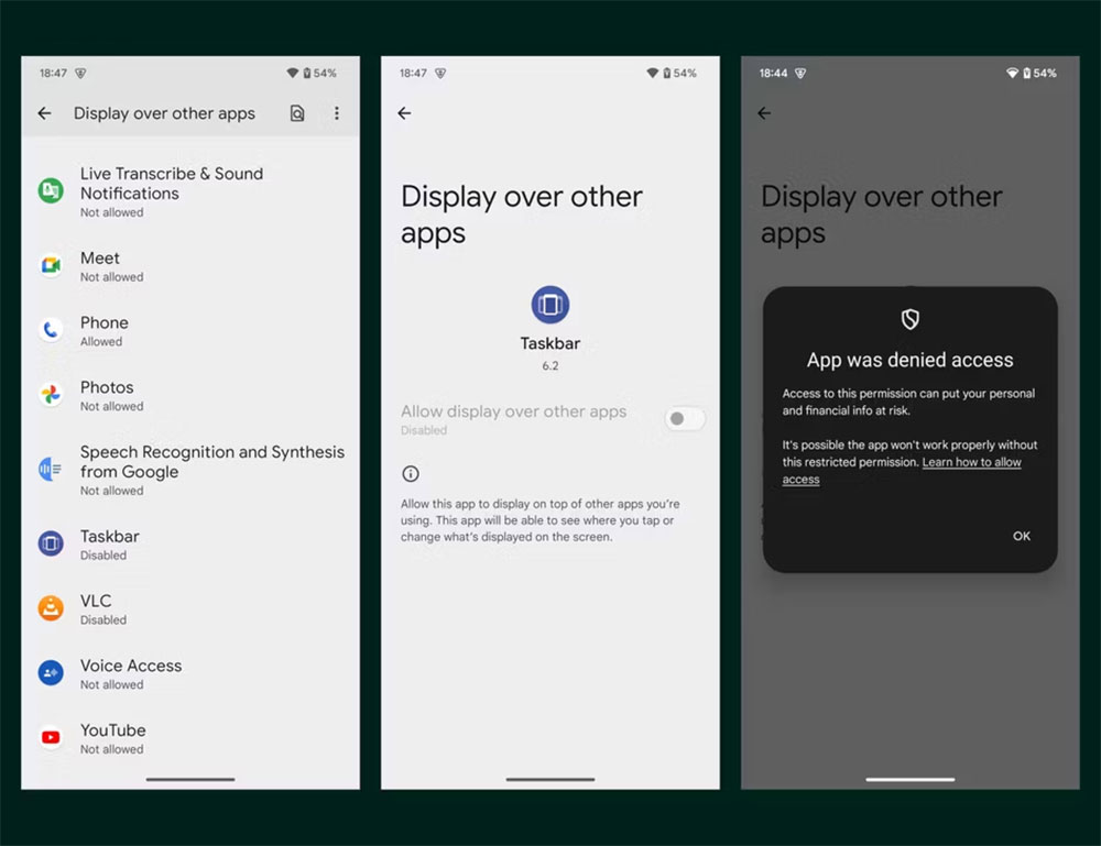最大的影響之一是 Google 阻止存取輔助功能和通知監聽器 API,當然,正如之前提到的,Google 確實允許第三方存取這些 API,這確實提供了一定的靈活性。隨著 Android 15 即將發表,限制變得更加嚴格,Mishaal Rahman 強調了現在將被鎖定的新部分,例如覆蓋權限、簡訊運行時權限、裝置管理權限、撥號器等。同樣,這些限制將適用於從外部批准來源下載的任何應用程式。