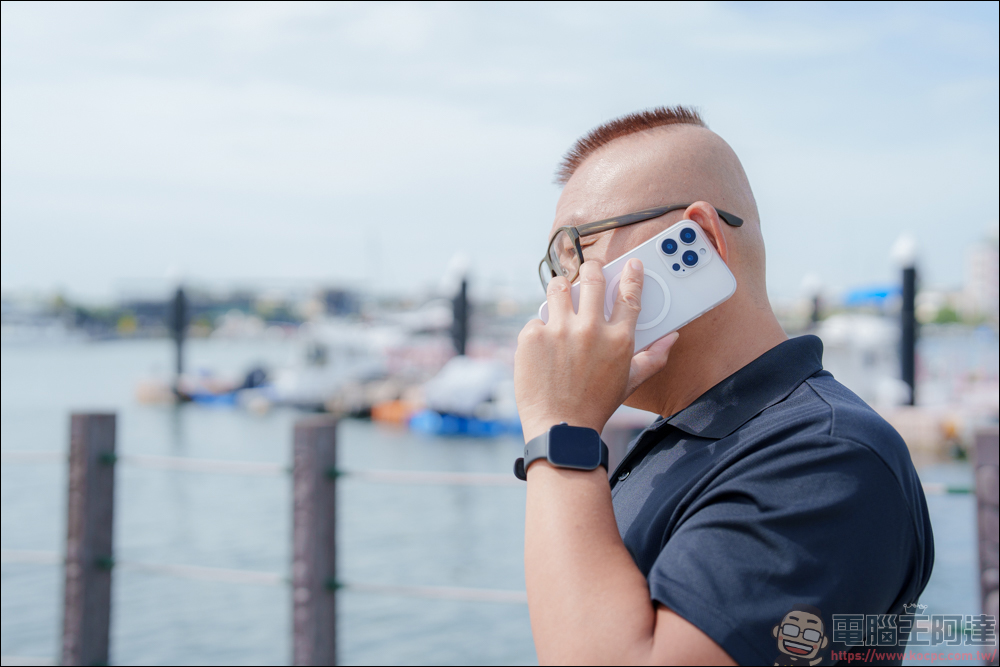 不過這樣的高度平放在桌面上,鏡頭框就會凸一塊。不過這也沒辦法,畢竟 iPhone 16 本身的鏡頭高度就設計得比較凸,為了保護好鏡頭,所以不得不作這樣的設計 :