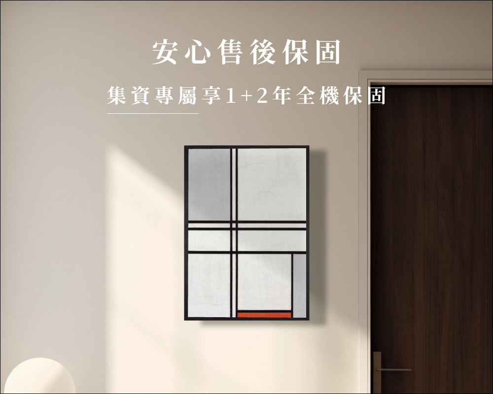 整機重量只有 10.4 公斤,輕巧易掛,搭配極具品味的畫作,懸掛在牆上就如同一件藝術品。機身外框可選擇多種國際級畫作,例如 Piet Mondrian、常玉的《荷》,以及新銳插畫家日頭 LITTOP 的作品,帶來無限的居家美學選擇。