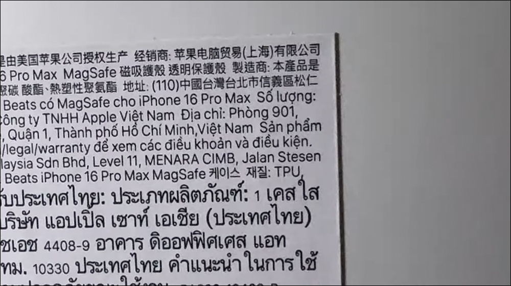 有網友翻出之前 Apple 原廠的 iPhone 16 Pro Max 保護殼就發現,進口商的地址確實只有寫「台北市信義區松仁路 100 號 32 樓」,沒有「中國台灣」這文字。