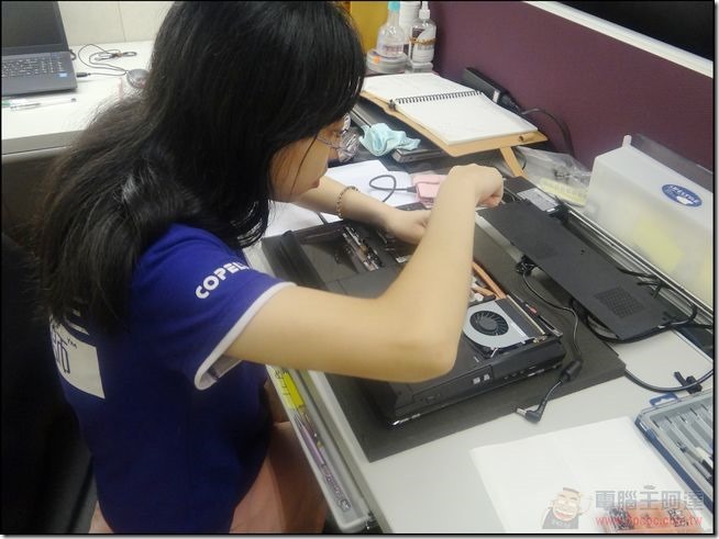 現場技術人員的維修拆解技術不是蓋的,複雜的筆記型電腦幾分鐘內已經快被大部分解完畢了,有任何硬體上的問題或升級需求,也可以向喜傑獅現場的工作人員詢問專業意見: