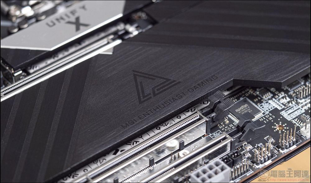 在主機板的各個細節上都可以看到 MSI MEG Z890 UNIFY-X 象徵性的標誌,高階的 MEG LOGO 以及 UNIFY-X的LOGO: