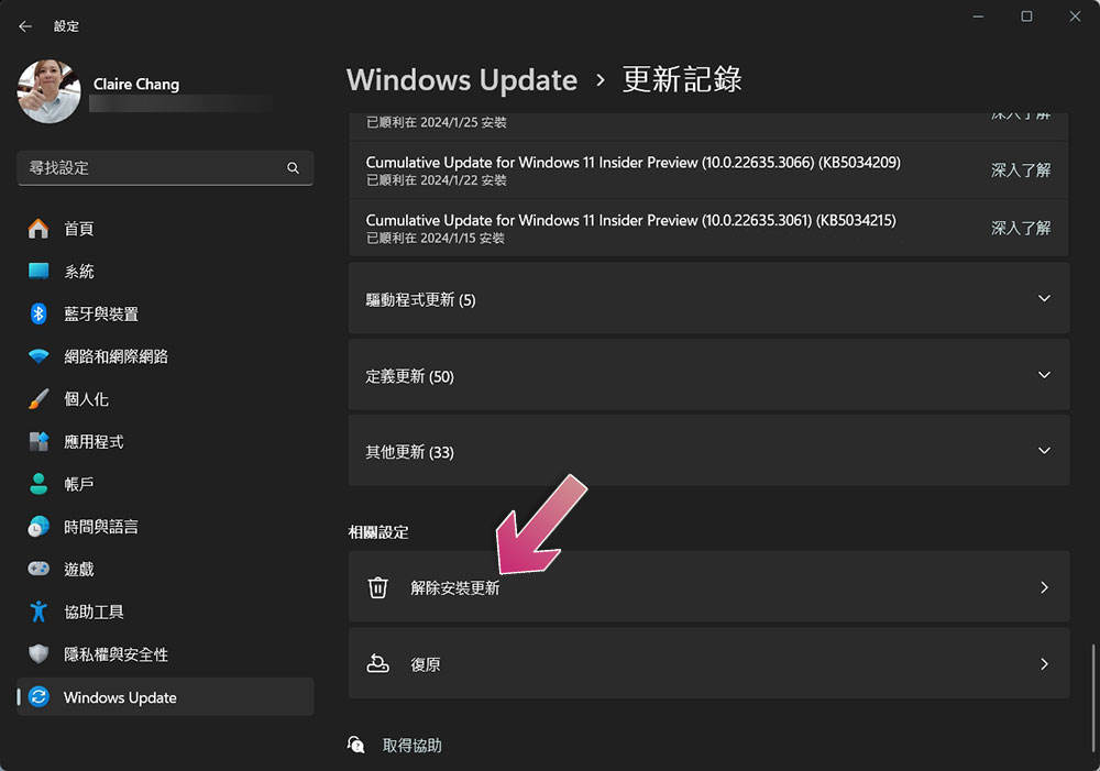 微軟最近在其 Learn 網站上確認了該問題,並承諾在未來幾週內修復。目前,擺脫它的唯一方法是卸載非安全性更新。如果你感到困擾,可以透過按鍵盤上的 Win 鍵+ I 開啟「設定」應用程式,然後前往「Windows Update >> 更新記錄 >> 解除安裝更新」(要捲到最下面),找到 KB5044384 更新並點擊「卸載」選項。