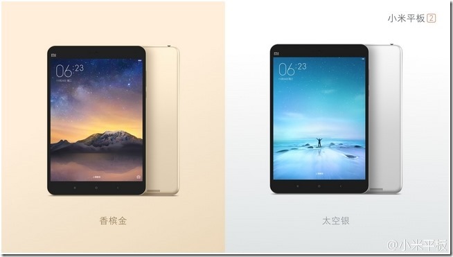 而睽違許久的小米平版2也在今日正式問世,同樣的也改作金屬機身,搭載7.9吋螢幕,解析度為2,048×1,536。厚度6.95mm,重量322公克,略重於7.9吋螢幕的iPad mini4(304公克)。內建Intel X5-Z8500四核處理器、2GB RAM、6,190mAh電池、鏡頭部分則為800萬畫素主鏡頭與500萬畫素前置鏡頭,連接介面改為使用USB Type C介面。內建系統有Android基底的MIUI 7及Windows 10兩個版本。售價部分,16GB ROM版本官方建議售價是999人民幣,折合新台幣約5000元。64GB版本則是1299人民幣,折合新台幣約6500元。