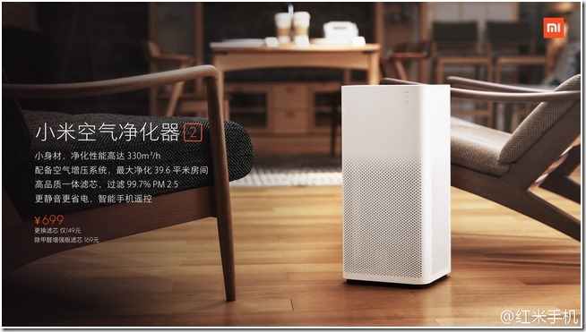 最後是連第一代都沒登台的小米空氣清淨機2,外型依舊採用四方體設計,體積比小米空氣淨化器1縮少40%,售價只有699人民幣,折合新台幣約3500左右。