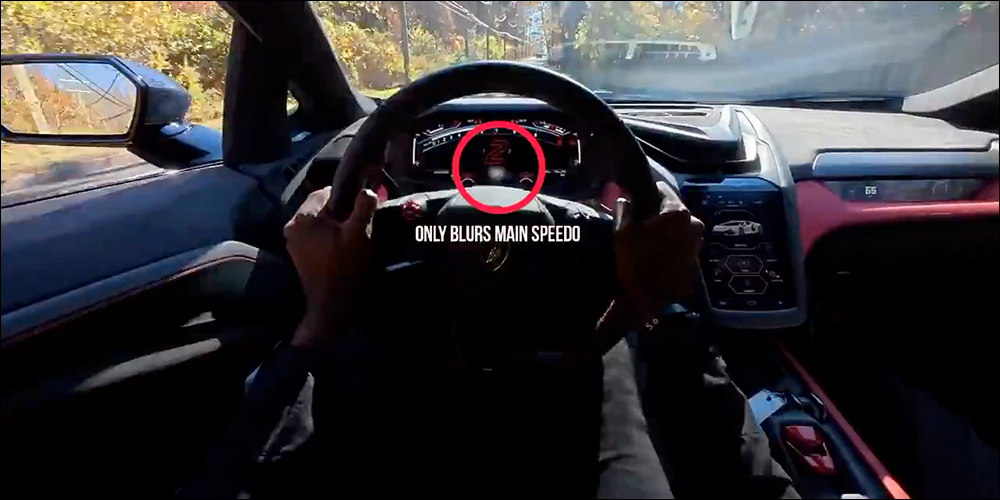 在 MKBHD 開著 Lamborghini Revuelto 超速的期間,部分片段駕駛的數位儀表是有刻意將時速打碼處理,但一旁副駕的螢幕則是出賣了他,像是這段的車速為 65mph 約為 104.61km/h 。