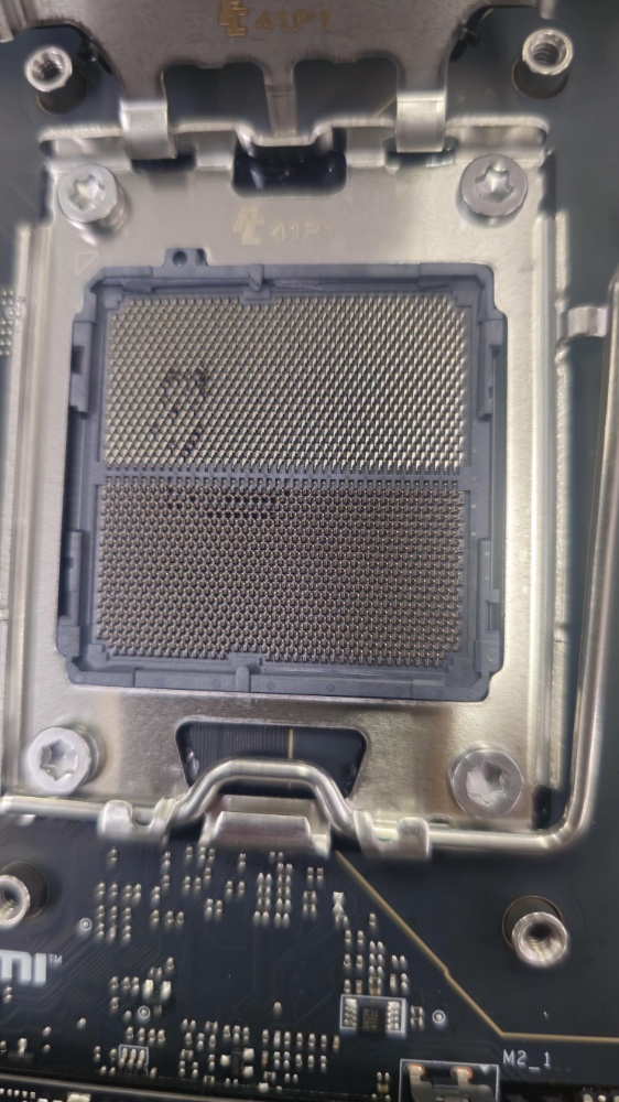有用戶注意到主機板 CPU 插槽側邊不太正常,有可能因為安裝時放置不正確並強行固定,進而導致塑膠形狀跑掉,無法正確接觸,才會出現這情形: