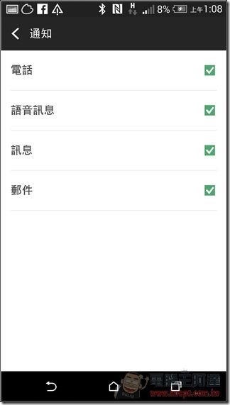 另外在「通知」中也可以設定要顯示的訊息通知圖案,不想在 HTC Dot View 中顯示的項目就可以自己關掉:
