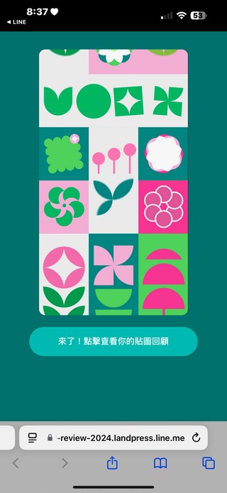 接著會需要等待系統跑一下,跑完出現「來了!點擊查看你的貼圖回顧」就可以看到自己 2024 貼圖回顧了!