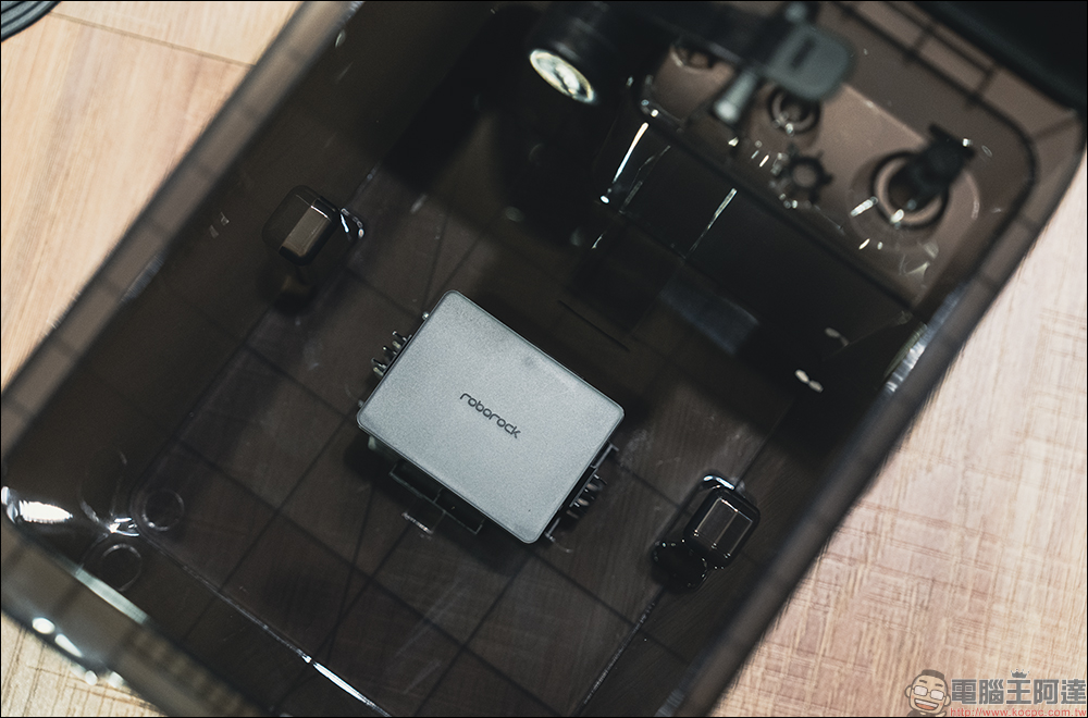 掀開上蓋後就能看到完整的集塵盒,原以為 G20S Ultra 集塵盒就如其他常見的掃拖機器人那樣單調,卻蘊藏滿滿的細節。