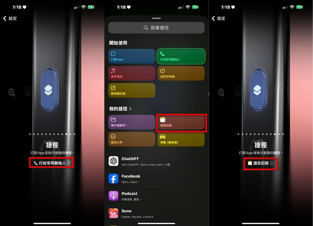 取得捷徑後,打開「設定」→「動作按鈕」→「捷徑」。