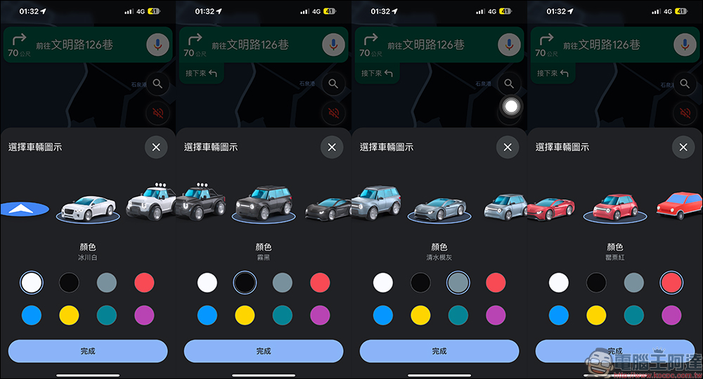 但是,現在起用戶能選擇喜愛的車輛圖示車型,亦可選擇 8 種車輛顏色!車輛顏色提供冰川白、霧黑、清水模灰、罌粟紅、天藍色、陽光黃、湖水綠,以及日落洋紅色共 8 種選擇。無論是哪種車型,都更容易挑到和自己愛車相似的圖示,在導航過程也增加更多的帶入感(?)