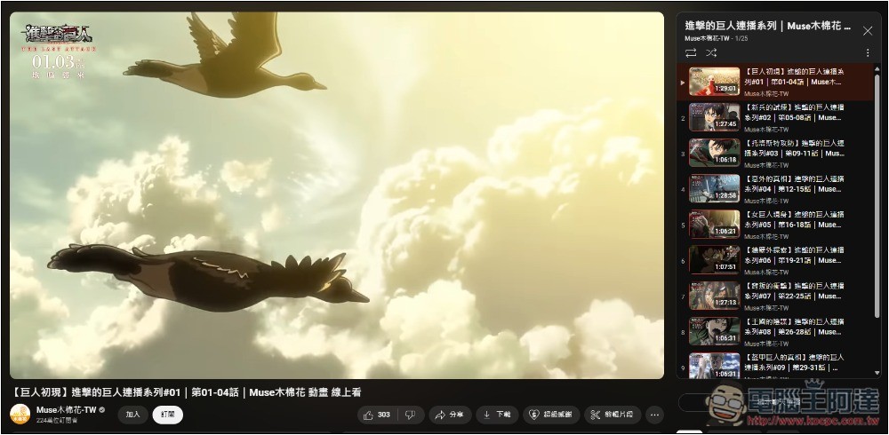 打開播放清單後,右側也會顯示所有集數,方便你隨時切換: