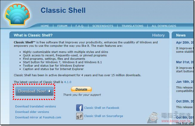首先到「Classic Shell」官網(請點我)下載軟體: