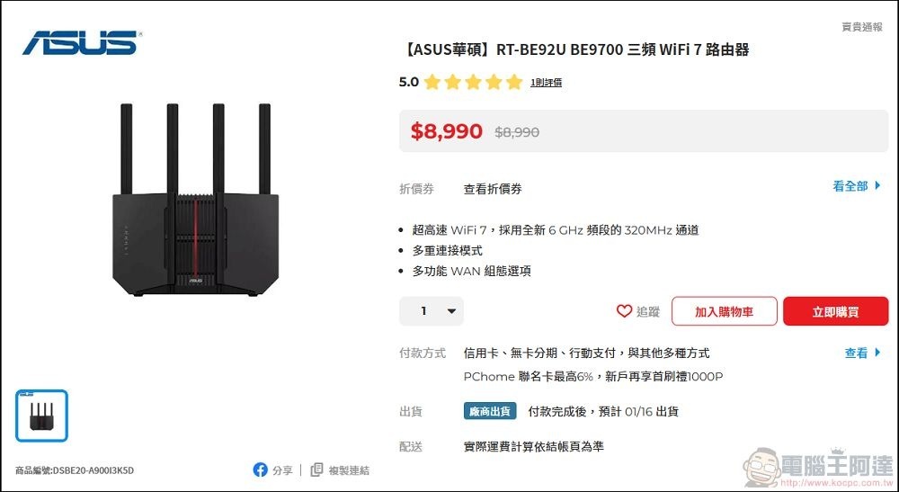 而且ASUS RT-BE92U是一台萬元有找的高階機型,目前的售價來到了8,990的甜蜜價格,可以說在相同價位的產品當中,ASUS RT-BE92U幾乎是打片無敵手,而且如果你已經是華碩路由器的使用者,更是可以趁這時候入手一台ASUS RT-BE92U,透過AiMesh就能夠組件出一個覆蓋率極高的網狀網路,原本的路由器也不會因為升級ASUS RT-BE92U而失去了功能,所以如果你有想要升級WiFi 7的朋友們,絕對不能錯過這台全新的高階路由器ASUS RT-BE92U。
