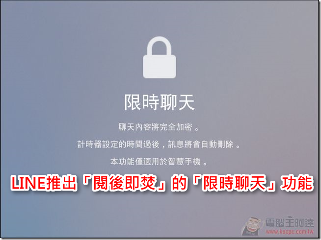傳訊軟體與社交類的應用最怕的就是「隱私」外洩,像之前明星手機遺失,裡面的私密照與朋友的電話就全部被攤在陽光下。另一種是聊天對話的內容被有心人士側錄或擷取利用,像之前曾經就有人婚外情與外公外婆私密對話內容被對方向媒體赤裸裸公開的情況。所以之前國外曾流行過的「閱後即焚」的傳訊軟體「SnapChat」,就在青少年間相當受歡迎,因為閱讀過後在設定的時間內,不怕與朋友間的對話被家長偷拿手機打開偷看對話內容。LINE這次剛推出的更新就是加入 SnapChat 的閱後即焚元素,稱為「限時聊天」,接下來阿達為大家詳細介紹如何使用保障您的隱私。