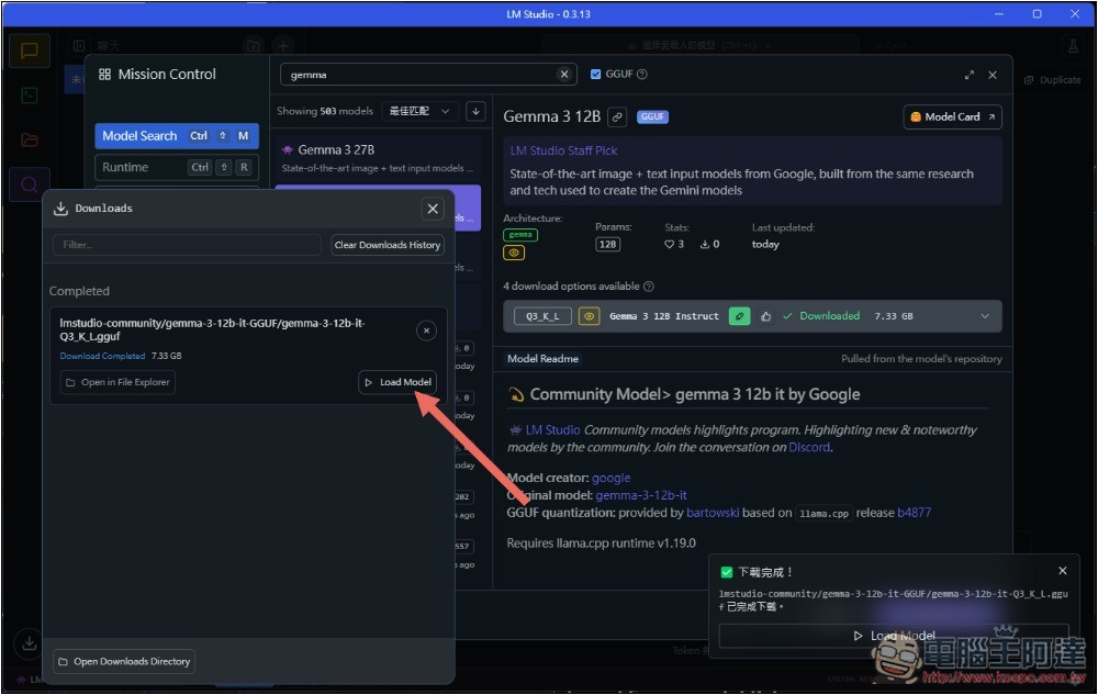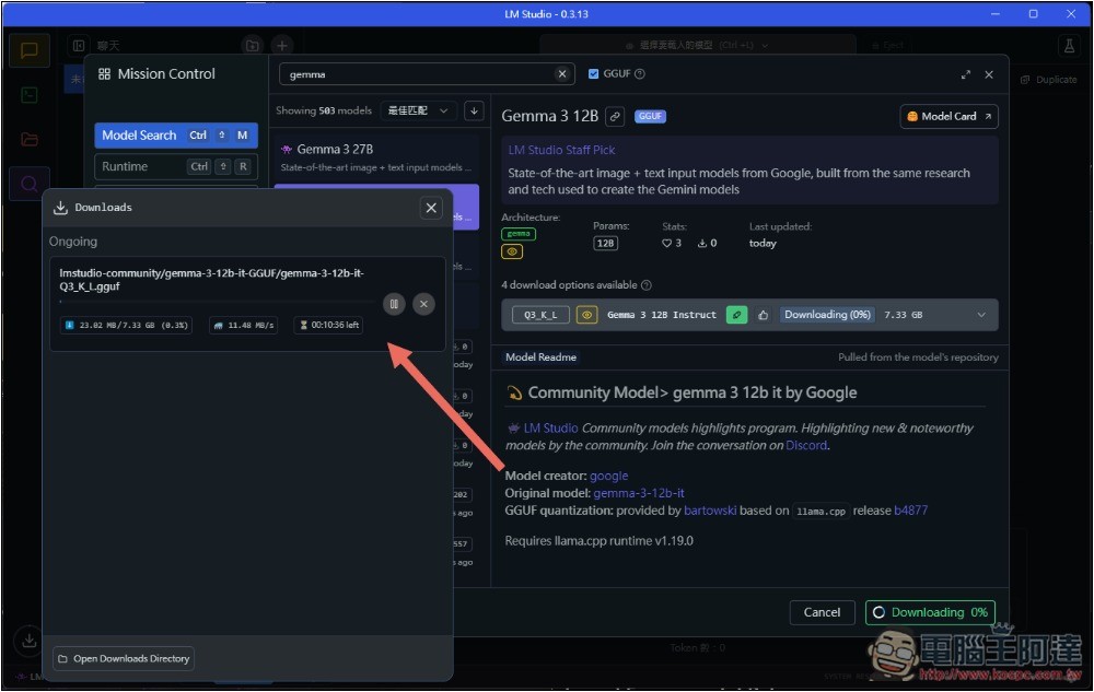 就會找到最新 Gemma 3 模型了,看你要安裝哪一個: