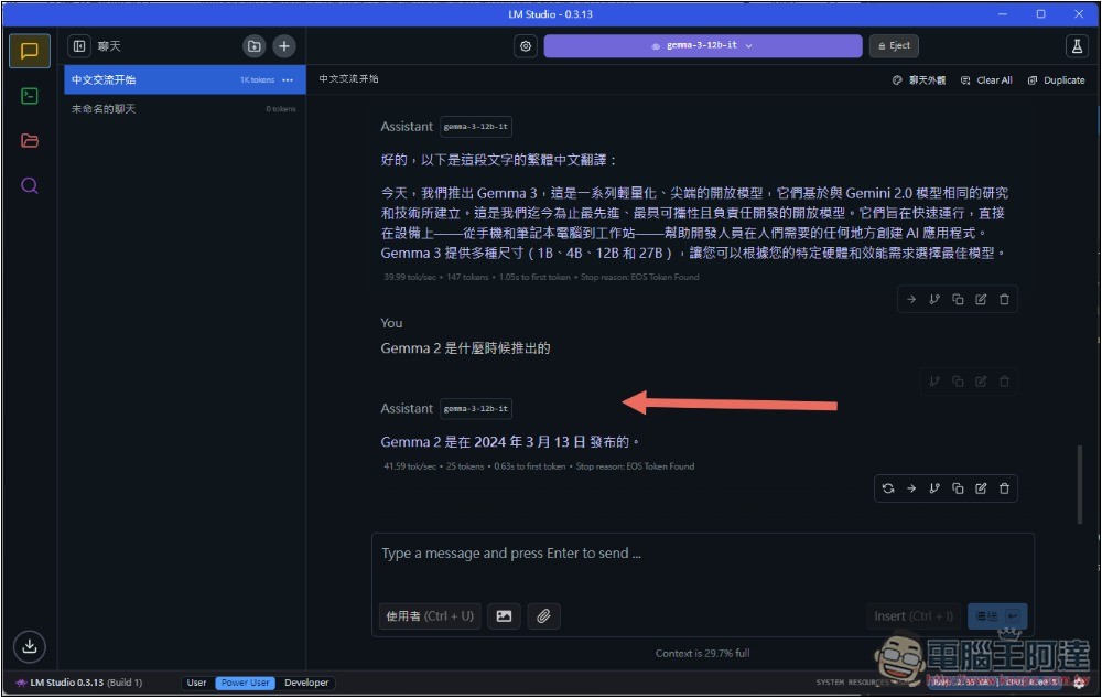 就會跳轉到聊天介面了,可以開始跟 Gemma 3 AI 聊天: