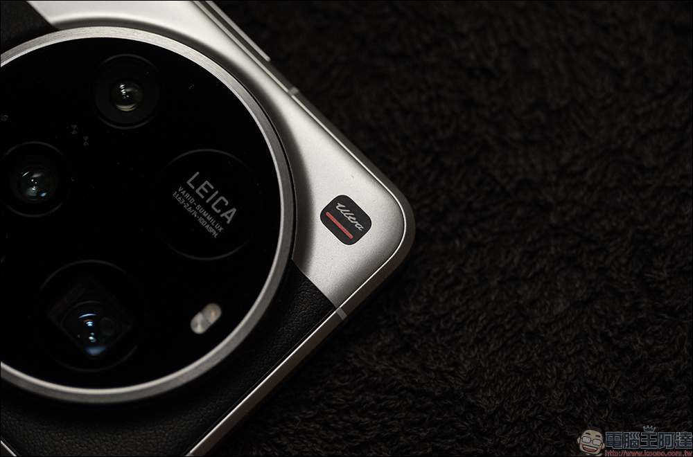細節部分, Xiaomi 15 Ultra 以自家純電超跑 Xiaomi SU7 Ultra 的「Ultra」字樣,以相機銘牌的形式低調點綴在 Xiaomi 15 Ultra 機身設計上,下方的紅線也與徠卡的代表色相呼應。