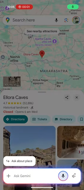 對於收到的用戶,現在在 Google Maps 中點選地點並喚醒 Gemini,下方就能看到「Ask about place」選項,按下之後,Google Maps 會將該地點的 URL 傳給 Gemini,讓它知道你問的地方在哪裡,然後回答你的問題。