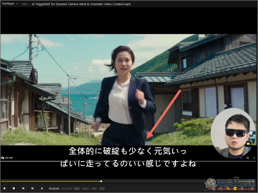 回到 PotPlayer 播放影片,就會變成改用本地 AI 語言模型翻譯了,下面這句日文我用 Gemma 3 12B 翻譯是「說實話,要判斷是不是昭和劇的場景,真的蠻難判斷的吧」,我看得懂意思: