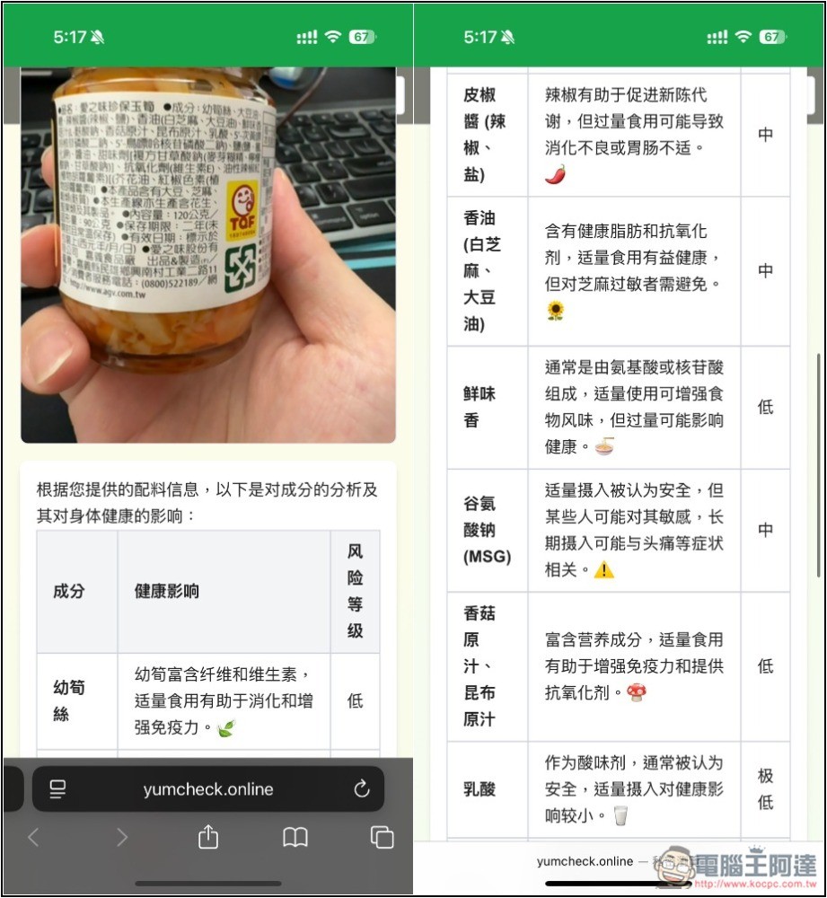YumCheck 藉由 AI 分析食品的原料成分對健康影響程度