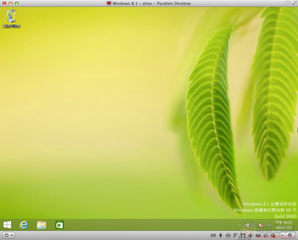 如果選擇「如同 Mac」,那就不會有 Windows 桌面,只有 Windows 的應用程式,可以在 Mac 上使用 Windows 應用程式,但是目前得知 Windows 8.1 沒辦法這樣玩。