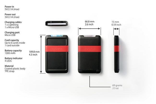 ▲ 這款「Pocket」不僅僅只是行動電源而已,還結合錢包功能,因此你每天攜帶的信用卡、身分證甚至是名片,都可以收納在裡面,最多約放入約六張的卡片。