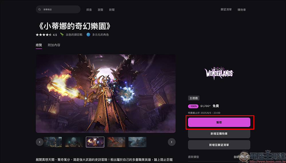 這兩款遊戲限免領取的時間是從現在起,到 2025 年 6 月 5 日(五)晚上 11:00 前,只要登入 Epic Games 帳號,在本週限免遊戲的頁面點選「獲取」: