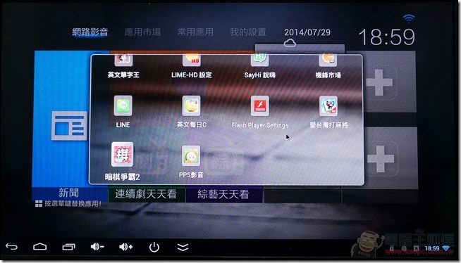 內建的 Play 商店可以下載PPS、風行網這類相當方便的網路影音串流軟體,可以讓直播盒子的實用性大增:
