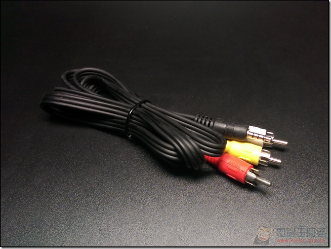 直播盒子的特點就是 I/O 齊全,包含了 Micro USB 連接埠、HDMI視訊接頭、RJ-45網路連接埠,與舊款電視專用的 AV OUT,搭配隨機附贈的 AV 傳輸線,舊款沒有 HDMI 端子的電視也可以使用直播盒子: