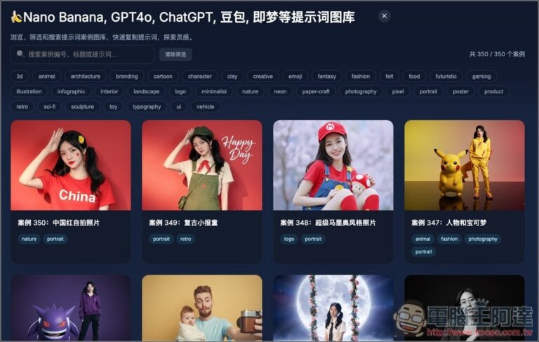 先前我們曾分享過一篇「超過 500 個 Nano Banana 提示詞」的文章,數量雖然非常多,但很多提示詞沒有中文翻譯,排版上也不太好閱讀,使用起來說真的不是那麼順。而最近就發現到這一個更讚的「OpenNana」網站,它除了也有收集來自 GitHub 的提示詞,還有不少來自 X 社群大神,目前已經有 350 個提示詞,而且隨時都會增加,