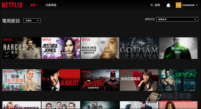 這時進到 Netflix 網站後,就會看到片單多非常多,另外介面也一樣會是繁體中文,不會變成英文,而台灣原本就有的影片也會保留中文介紹,新多出來的片單才會變成英文。