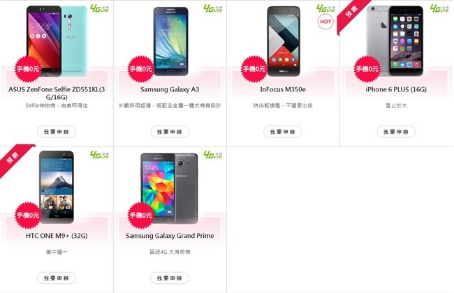 現在搭配「全國壹大網」399方案,就可以把 ASUS Zenfone 2 Laser ZE500KL、InFocus M350e、HTC Desire 626 dual sim及Samsung Galaxy J5等多款熱銷手機 0元帶回家(限攜碼並簽訂 30 個月合約),是相當超值划算的資費,就算要選購 iPhone 等高階手機也提供 24 期分期0利率活動,讓您輕鬆換機沒負擔,沒有換手機需求的話單辦門號當然也ok啦: