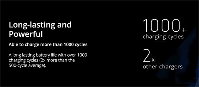 除了極速充電,在安全與耐用性部分也沒忽視,機內設有 8 道防護設計,包括 Overcorrect、Overheating、Overcharging 等等,只要過熱或超出預設安全範圍的電流,都會自動斷開電源,來確保按全。而循環充電次數更可達 1000 次以上,是市面上普遍行動電源的 2 倍之多。