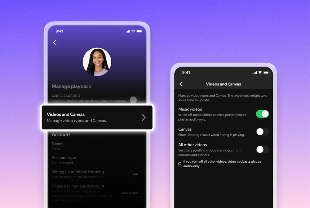新的控制選項包含兩個主要開關:一個專門用於啟用或停用音樂影片,另一個則負責管理「所有其他影片」,例如創作者的短影音內容(類似 TikTok 的形式)以及影片 Podcast。此外,用戶也能在同一頁面找到關閉 Canvas 的選項。Canvas 是 Spotify 在播放畫面中加入的循環短動畫,雖然具有視覺吸引力,但也常被批評會分散注意力或增加數據使用量。透過這種分離式的設計,用戶可以自由組合自己的偏好,例如只關閉音樂影片但保留其他影片內容,或完全停用所有視覺元素。
