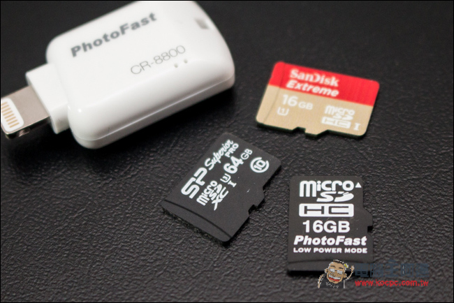 既然是 microSD 讀卡機,只要你有很多張 microSD 記憶卡,就能輕鬆打造及分配每張的任務,像 PhotoFast 自家這張相容性最好,因此主要用於備份、而 SP 這張容量最大,拿來裝影片或是音樂、SanDisk 則是給相機用等等。而家中有其他成員也是用 iOS 裝置的話,也能互相分享 microSD 讀卡機,讓每個人都能備份資料,已確保不時之需。