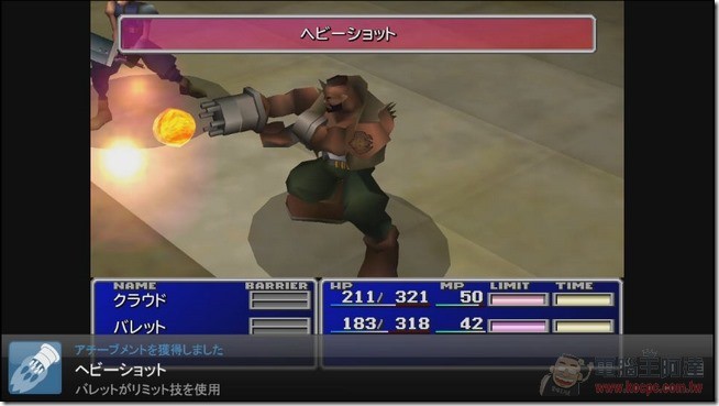 沒多久,克勞德就會遇到第一場戰鬥,可以熟悉一下戰鬥介面,右邊有個TIME表,隨著時間的累積,當TIME表滿的時候,角色就可以進行攻擊: