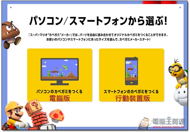 想要創造屬於自己獨一無二的《超級瑪利歐》桌布嗎?任天堂推出一款網頁與手機都可以用的桌布生成器小遊戲,可以稍稍彌補愛好者沒有 Wii U 的遺憾。