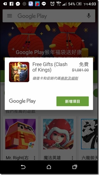 最近使用Android系統手機的朋友們注意了,從昨天開始打開Google Play的話,你應該可以看到Google Play開始贈送「Google Play猴年福袋好康」。每天點選都可以獲贈一套免費的APP,這項活動持續到2月11日止。