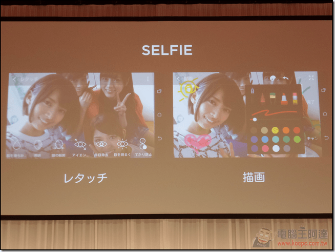 現場她們也相當賣力的介紹 HTC Butterfly 2 的各項特點,可以看出她們有花了一些時間練習操作,其中她們介紹了 Duo Camera景深相機、前鏡頭自拍與修圖應用、JBL耳機與 Sense 6.0: