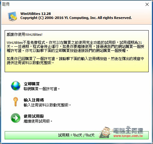 軟體安裝完成開啟後,選擇「輸入註冊碼」,幫剛剛取得的帳密填入即正式啟動完整版,這時會要求使用者重新開機。