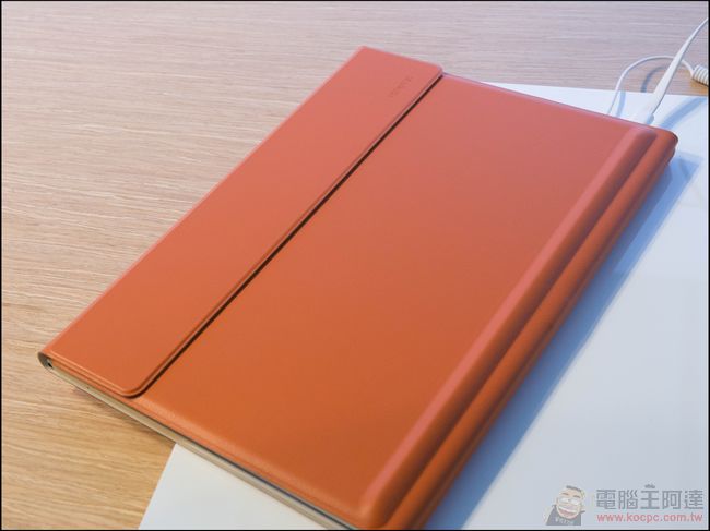 ▲鍵盤皮套將 Huawei MateBook 平板捲起來收納攜帶使用。