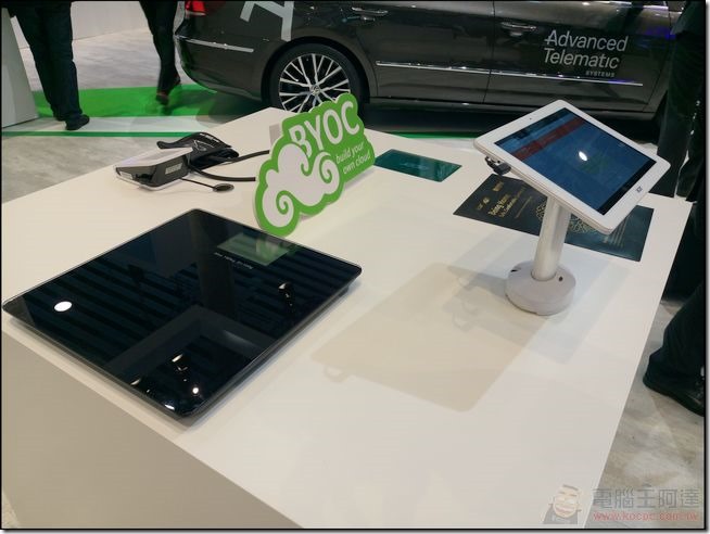 BYOC最早投入的領域之一即是智慧車,本次在MWC展中將有一台實體智慧車,呈現透過雲端做即時的車輛用軟體與服務更新(SOTA, Software over the air)概念;此外還能以使用者的智慧型手機來辨識不同用戶的不同使用行為、並將車輛中的設定,即時更改為該使用者的使用模式和偏好設定。BYOC還可透過雲端結合平板電腦,即時遠端監控車輛的導航或行駛地圖以及車速等,以了解目前駕駛者的行駛情形;並可結合腦波偵測裝置,觀察駕駛者的疲勞情況,以提升操控的安全性:
