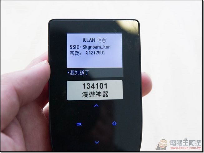 使用方面非常簡單,開機後只要按下「OK」就會顯示連線的SSID與密碼: