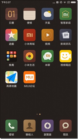 小米5介面的原生程式,基本上因為這是中國版本的手機,所以跟有許多中國的在地化服務,與台灣常見到的小米介面上是略有差異:
