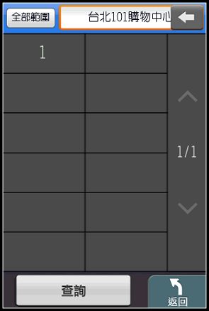 “找景點”則是使用關鍵字的方式來搜尋景點,如輸入”台北101″就會有許多相關自可以繼續選擇,蠻智慧的,如果懶得慢慢選字也可以用”全部範圍”顯示所有列表也可以: