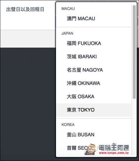 還沒決定日期的朋友,也可以使用首頁左側的「低價促銷」功能,選擇出發地以及目的地之後,就會列出目前正在低價促銷的機票。