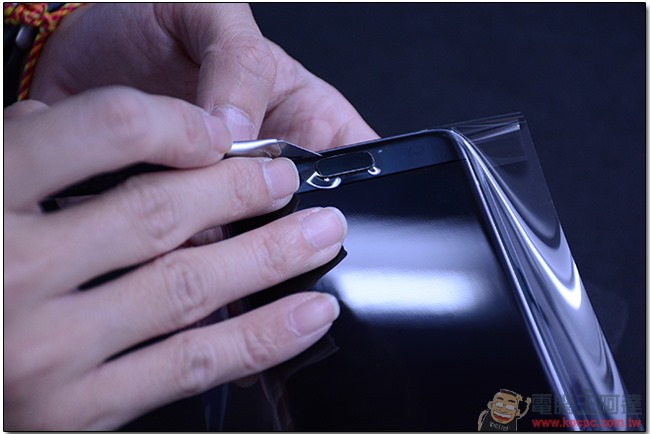 挖完孔,背蓋與金屬側邊的施工告一個段落,接下來進入正面滿版軟保貼的部分了!在開始貼膜前同樣也是要先徹底清潔。