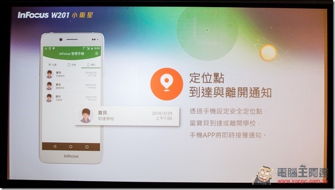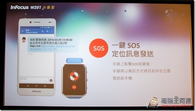 近日兒童安全的問題成為許多人的討論話題,InFocus就在兒童節前夕,推出了智慧型手表「InFocus W201 小衛星兒童定位手錶」,這款針對兒童族群安全問題而設計的產品,裡面除了可以讓長輩透過定位系統來掌握小朋友的行蹤以外,還貼心的設計了警急通報系統,讓兒童遇到危急事件時,可以快速地通知長輩。